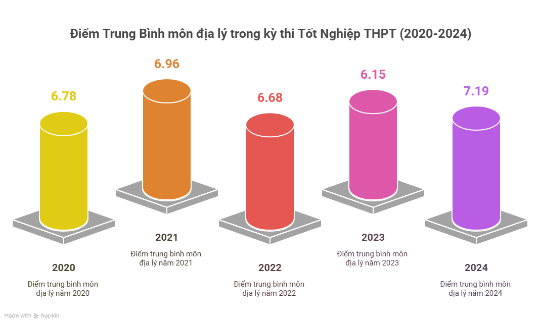 Điểm trung bình môn Địa Lý trong kỳ thi THPTQG 2020-2024