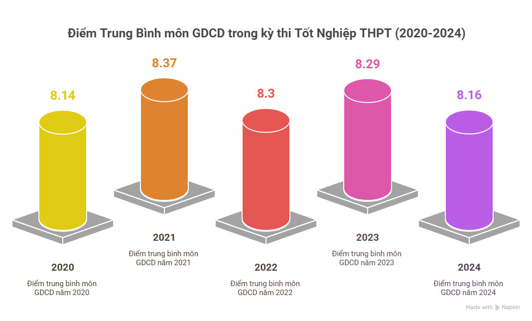Điểm trung bình môn GDCD trong kỳ thi THPTQG 2020-2024
