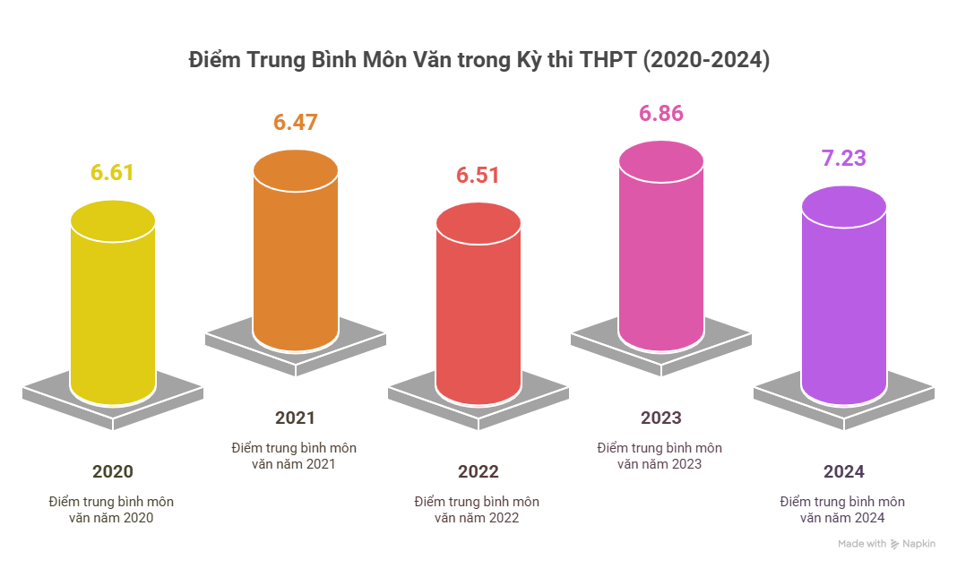 Điểm trung bình môn Văn trong kỳ thi THPTQG 2020-2024