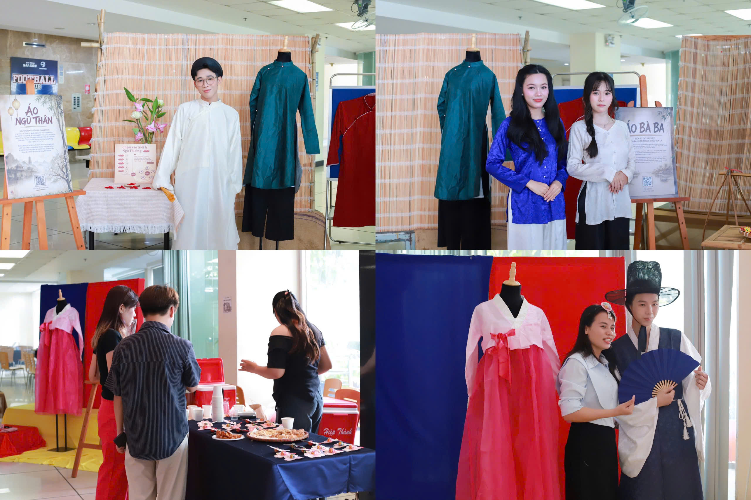 Khu triển lãm là nơi mang đến trải nghiệm trực tiếp cho người tham gia. Tại đây, sinh viên và khách mời có thể tiếp cận các bộ trang phục tiêu biểu như áo bà ba, áo ngũ thân và hanbok, cùng với nhiều phụ kiện truyền thống như khăn rằn, nón lá, mũ Gat hay trâm cài.