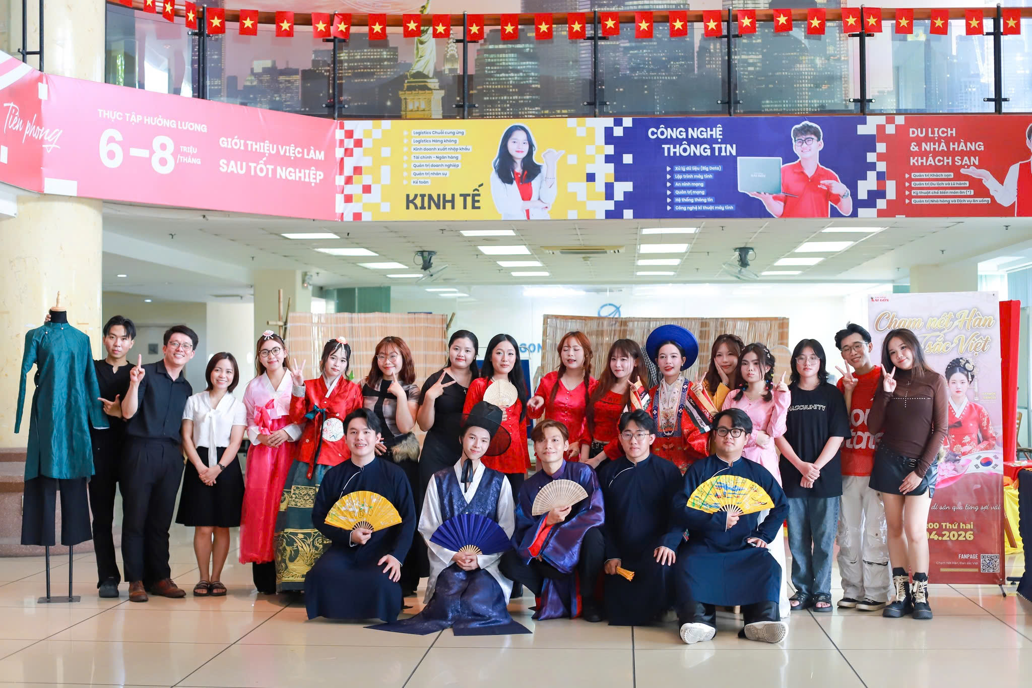Ngày 20/04/2026 tại sảnh trường Cao đẳng Sài Gòn, sự kiện “Chạm nét Hàn – Đan sắc Việt” thu hút đông đảo sinh viên và khách mời tham gia. Đây là chương trình do sinh viên ngành Marketing tổ chức, nhằm tạo ra một không gian giao thoa văn hóa độc đáo giữa Việt Nam và Hàn Quốc.