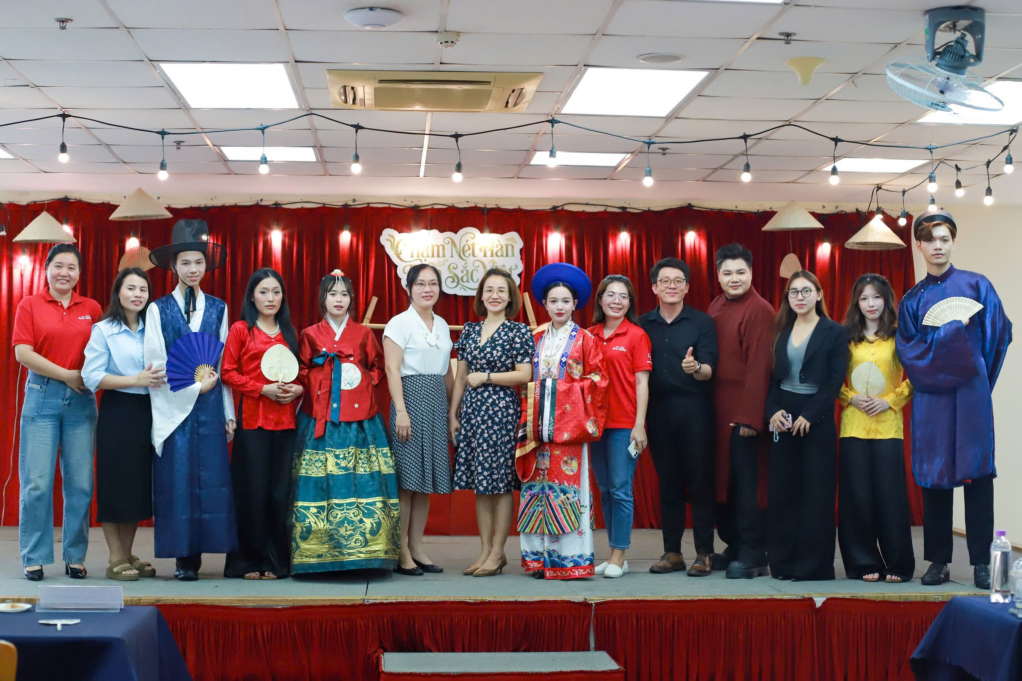 Sân khấu sự kiện là nơi diễn ra các màn trình diễn thời trang đặc sắc, thể hiện rõ tinh thần “đan xen” giữa hai nền văn hóa. Các bộ trang phục Việt Nam và Hàn Quốc được kết hợp theo cặp, tạo nên sự đối xứng và hài hòa.
