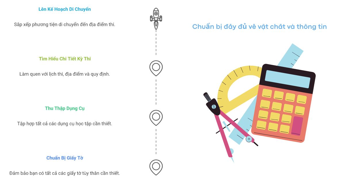- Lên kế hoạch di chuyển đến địa điểm thi (nếu cần).