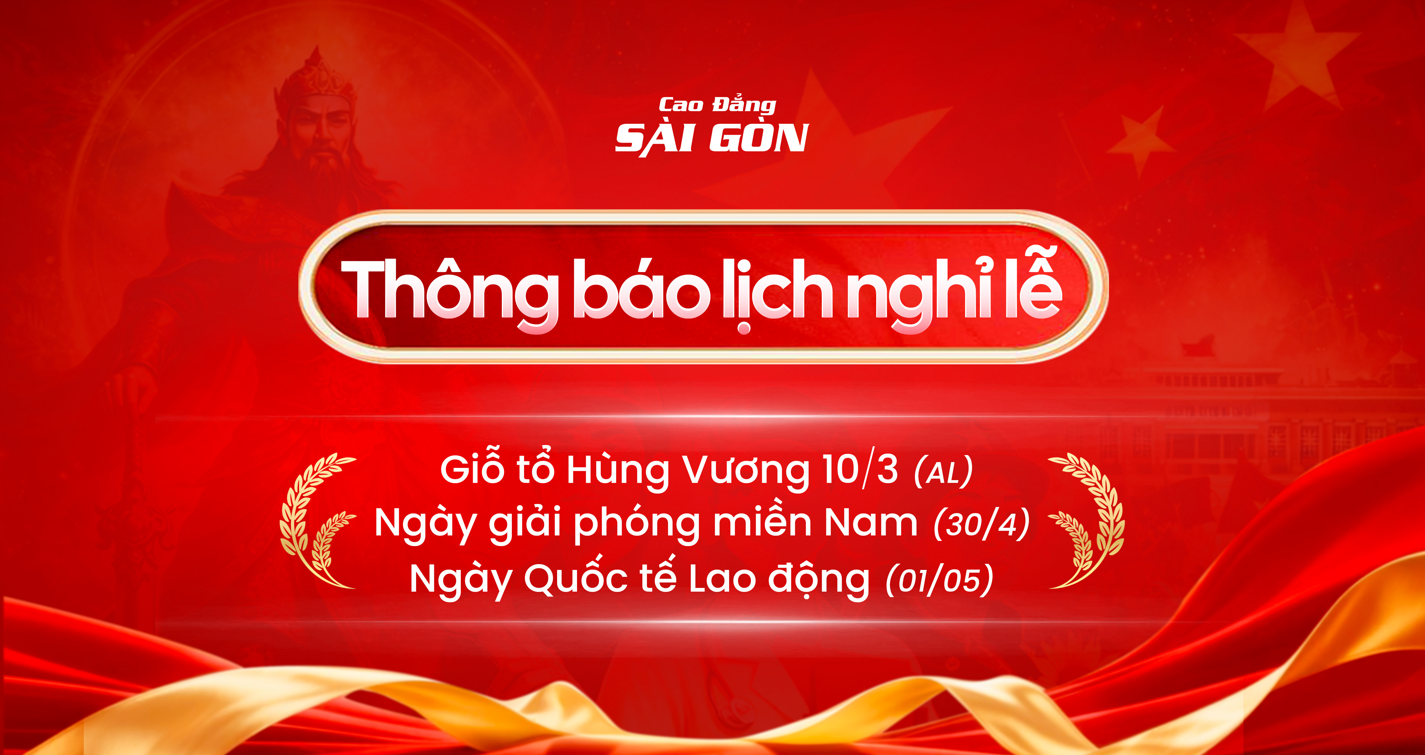 Thông báo lịch nghỉ Lễ Giỗ Tổ Hùng Vương, Giải phóng Miền Nam & Quốc tế Lao Động tại Trường Cao đẳng Sài Gòn