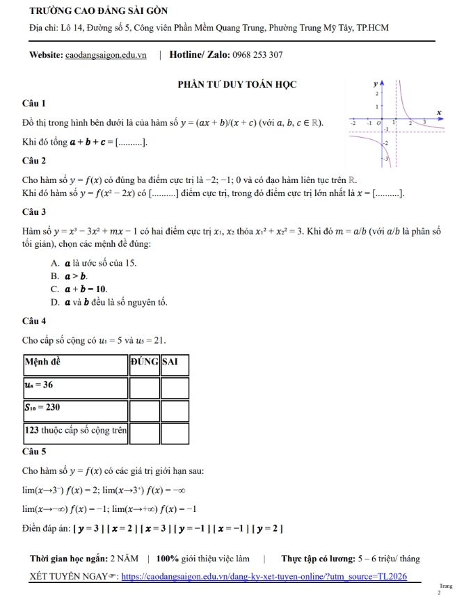 | Website: Caodangsaigon.edu.vn | Facebook: Cao Đẳng Sài Gòn |