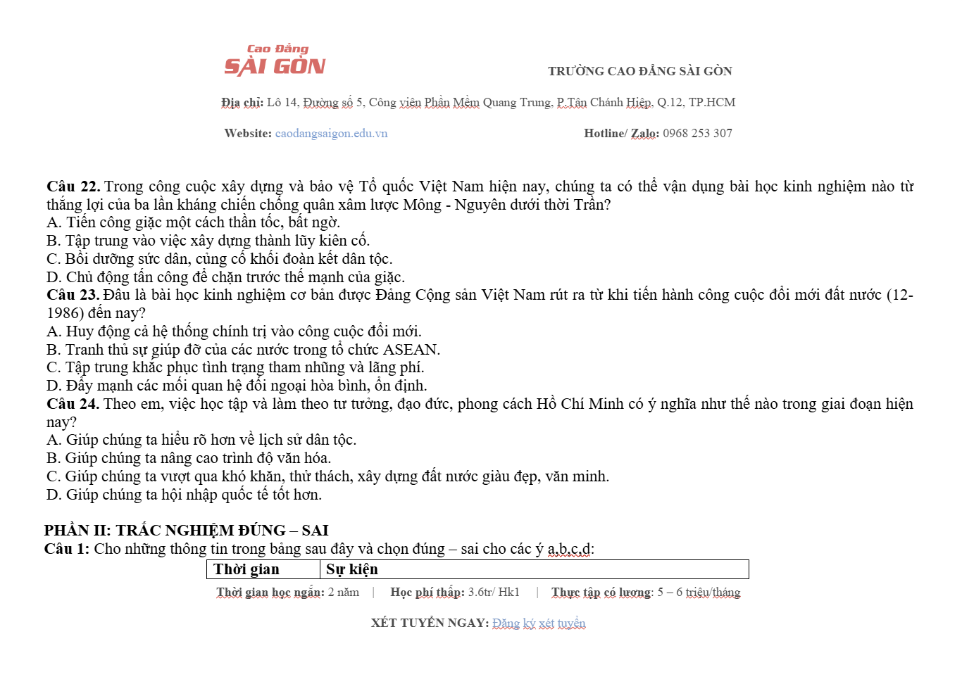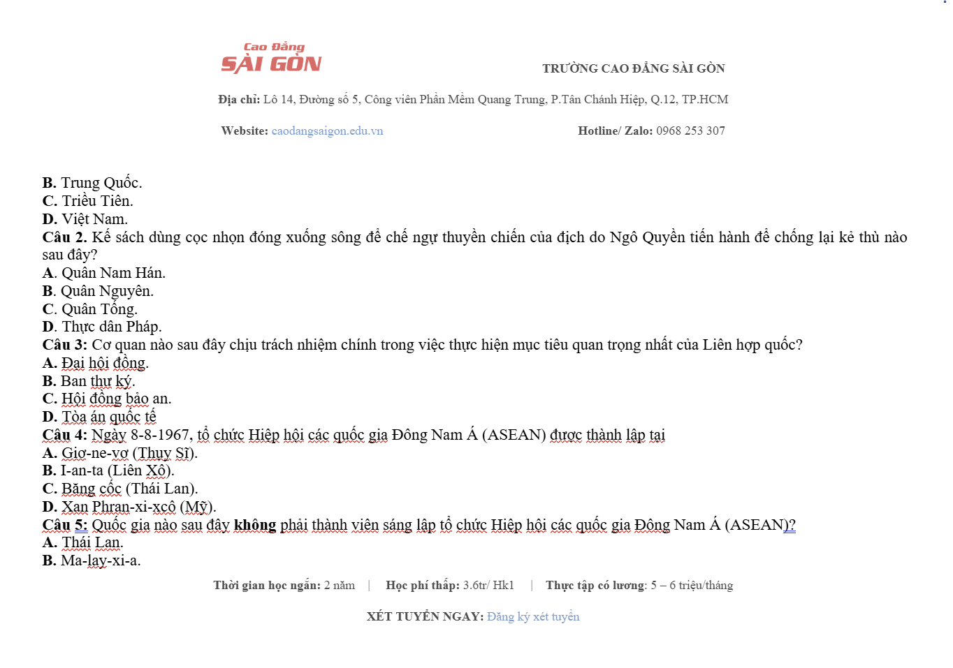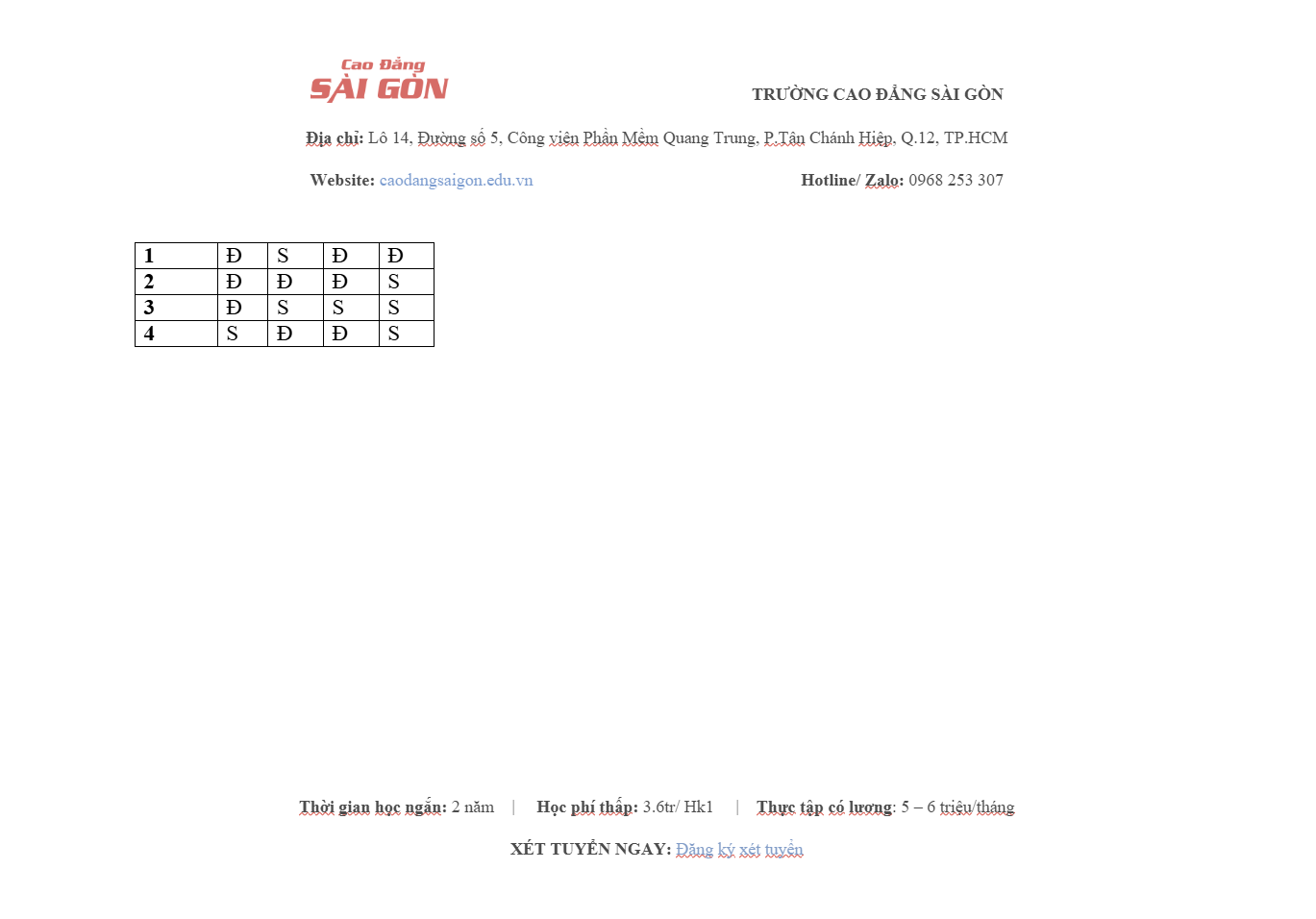 Website: Caodangsaigon.edu.vn Facebook: Cao Đẳng Sài Gòn