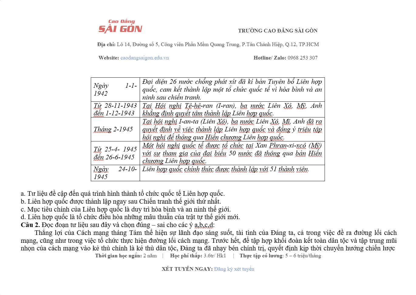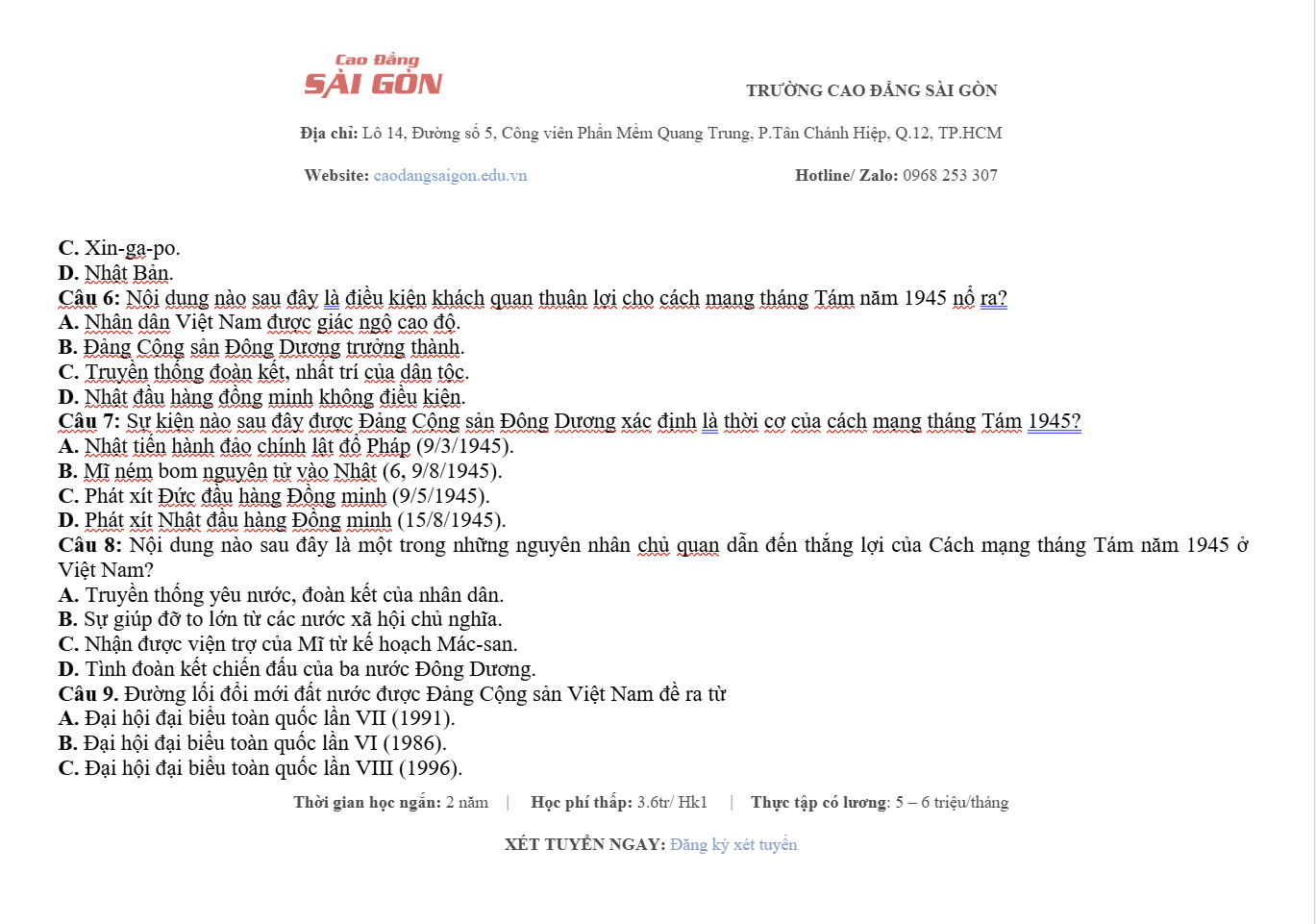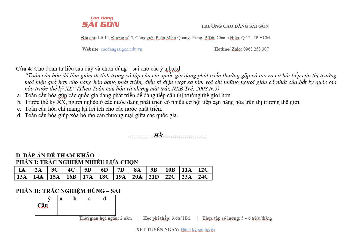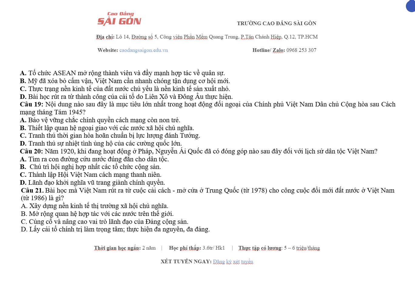 Website: Caodangsaigon.edu.vn Facebook: Cao Đẳng Sài Gòn