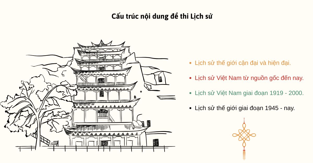 Đề thi môn Sử THPT Quốc gia thường bao gồm các mảng kiến thức chính: