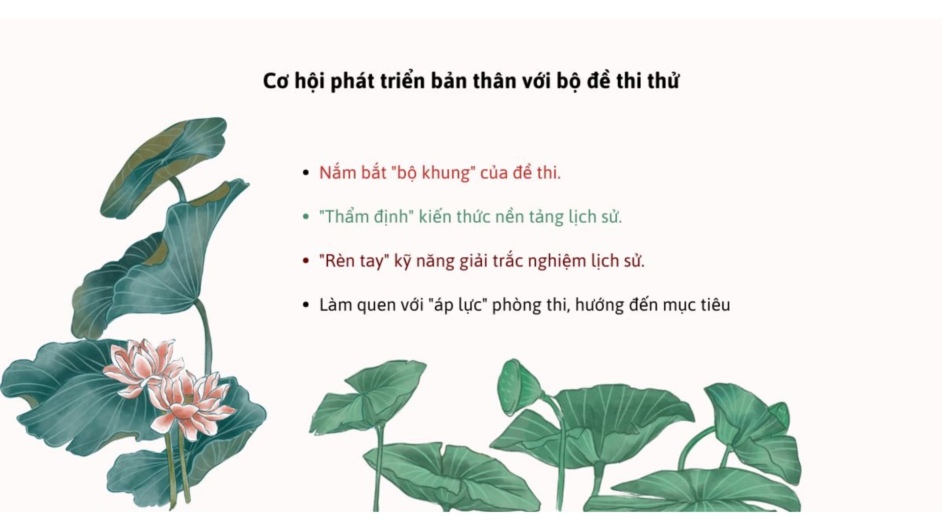 Bao trùm các chủ đề cốt lõi thường xuất hiện ở phần đầu bài thi Lịch sử THPT Quốc gia. Đây là cơ hội để bạn: