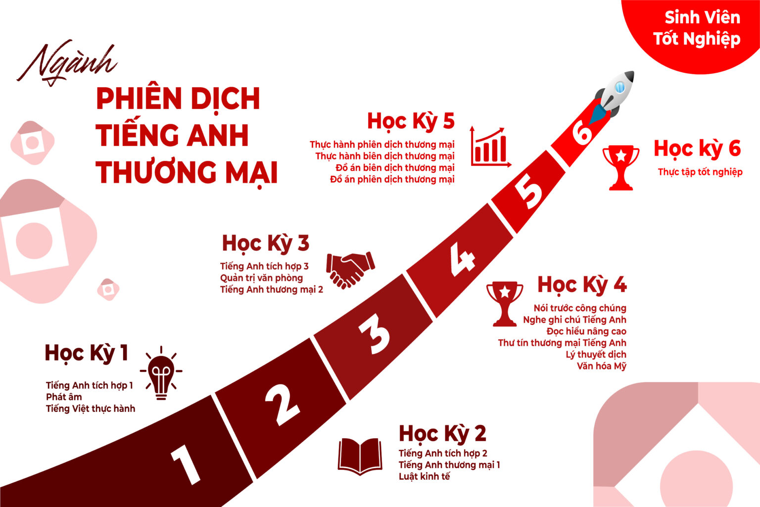 - Năm 1: Củng cố nền tảng tiếng Anh, rèn luyện kỹ năng giao tiếp, và tìm hiểu cơ bản về ngành thương mại.