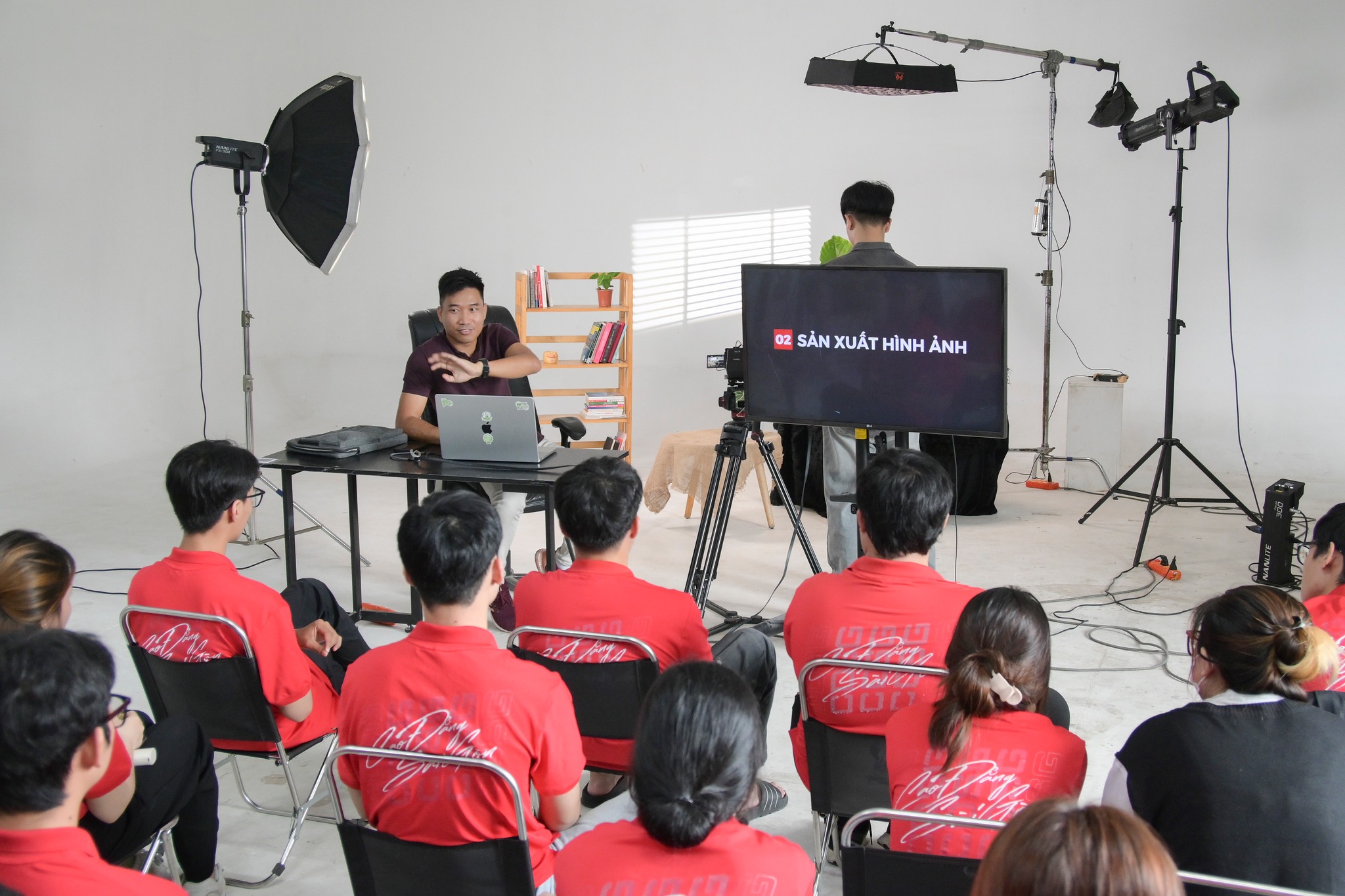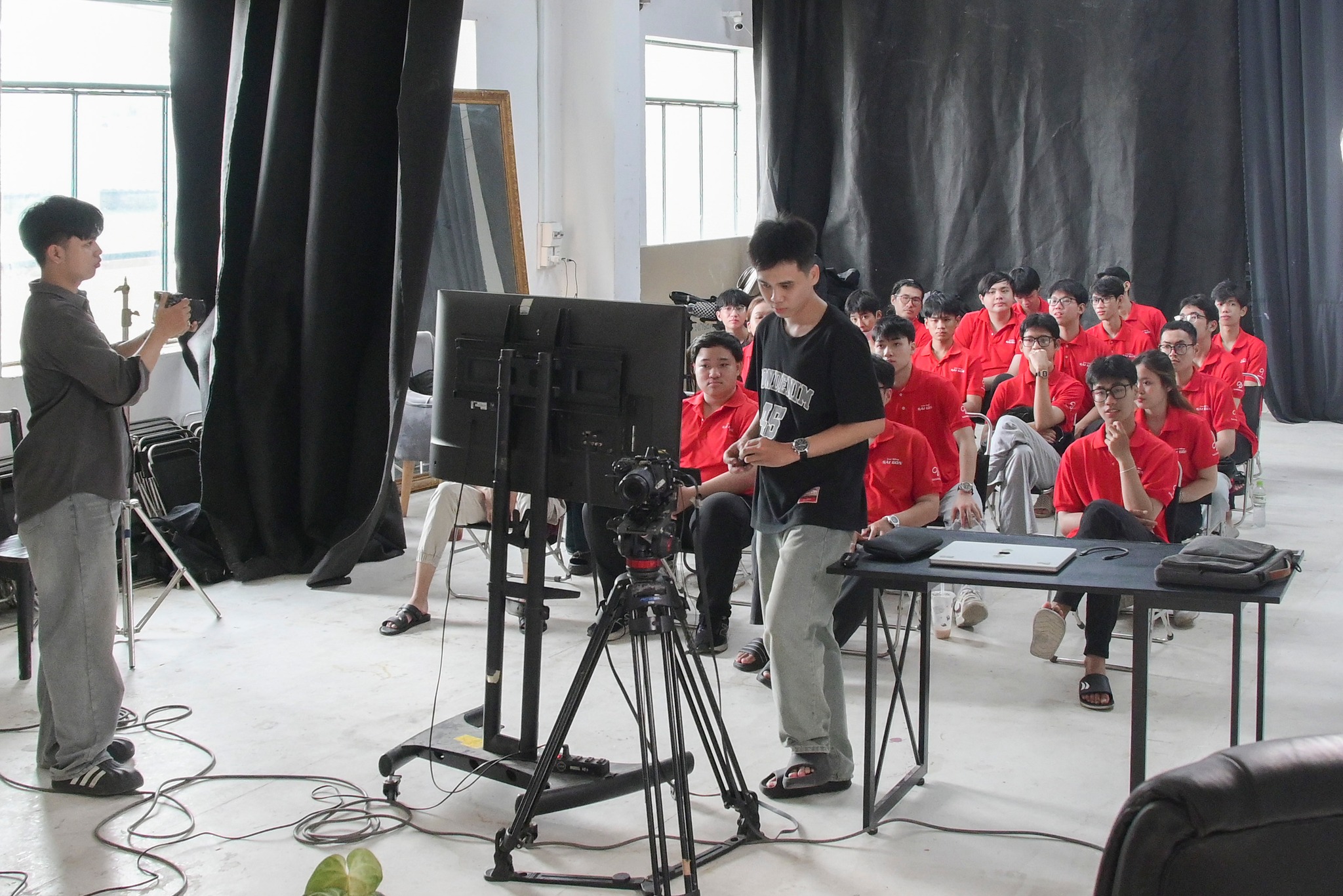 Một phần không kém hấp dẫn là kỹ năng chụp ảnh hậu trường – tưởng đơn giản nhưng lại là “bộ mặt” của cả ekip truyền thông. Sinh viên được hướng dẫn cách bắt khoảnh khắc tự nhiên, chỉnh ánh sáng và hậu kỳ để phục vụ truyền thông trên các nền tảng mạng xã hội. Song song đó, các bạn cũng học được cách tối ưu sản phẩm sau khi quay: