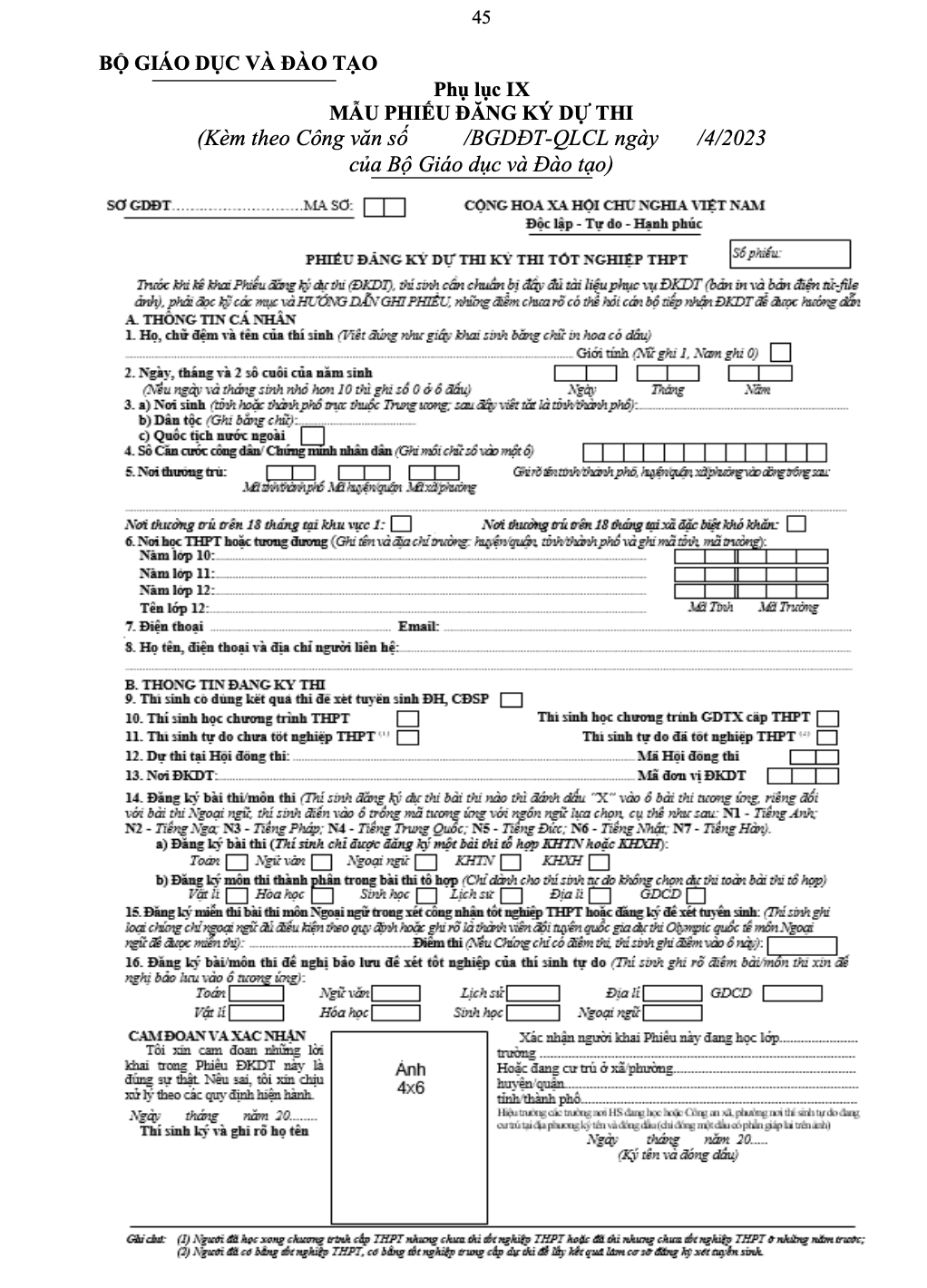 Đọc toàn bộ hướng dẫn trước khi cầm bút. Bất kỳ mục nào chưa rõ, hãy hỏi ngay người tiếp nhận hồ sơ – vì thí sinh phải hoàn toàn chịu trách nhiệm về thông tin khai trong phiếu.