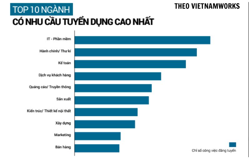Top 10 ngành có nhu cầu tuyển dụng cao nhất trong đó ngành kế toán giữ vị trí top 3