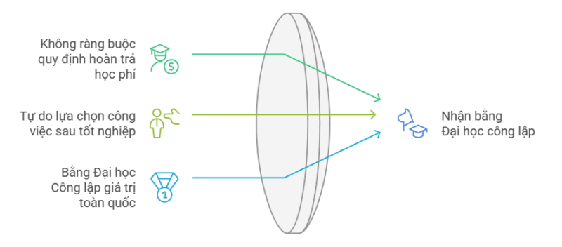 Theo Nghị định 116/2020/NĐ-CP sinh viên sư phạm chính quy sau khi tốt nghiệp phải làm trong ngành giáo dục ít nhất gấp đôi thời gian đào tạo – ví dụ học 4 năm phải làm 8 năm, nếu không sẽ phải hoàn trả toàn bộ học phí, chi phí sinh hoạt và lãi suất.Trong khi đó, hệ vừa học vừa làm không có bất kỳ ràng buộc nào. Bạn được tự do chọn nghề, không cần “trả lại” bằng cách đi dạy – hoàn toàn chủ động theo đuổi hướng đi phù hợp với bản thân.