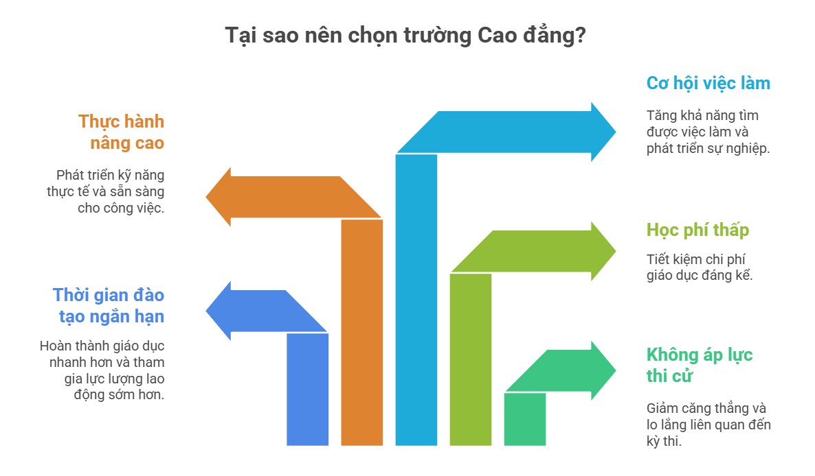 Nhiều bạn học sinh – sinh viên rẽ hướng chọn Cao đẳng bởi lẽ đây là con đường tạo ra tương lai rộng mở cho nhiều sinh viên sau khi ra trường. Những lý do phải kể đến như: